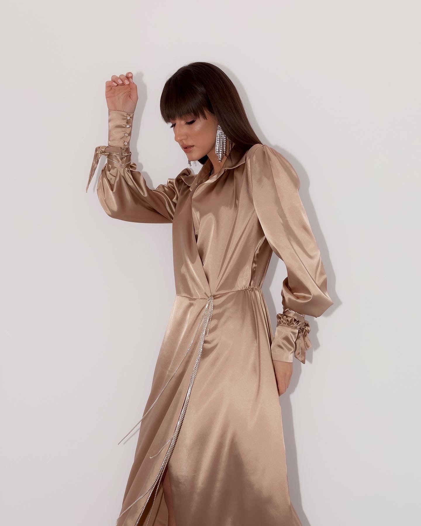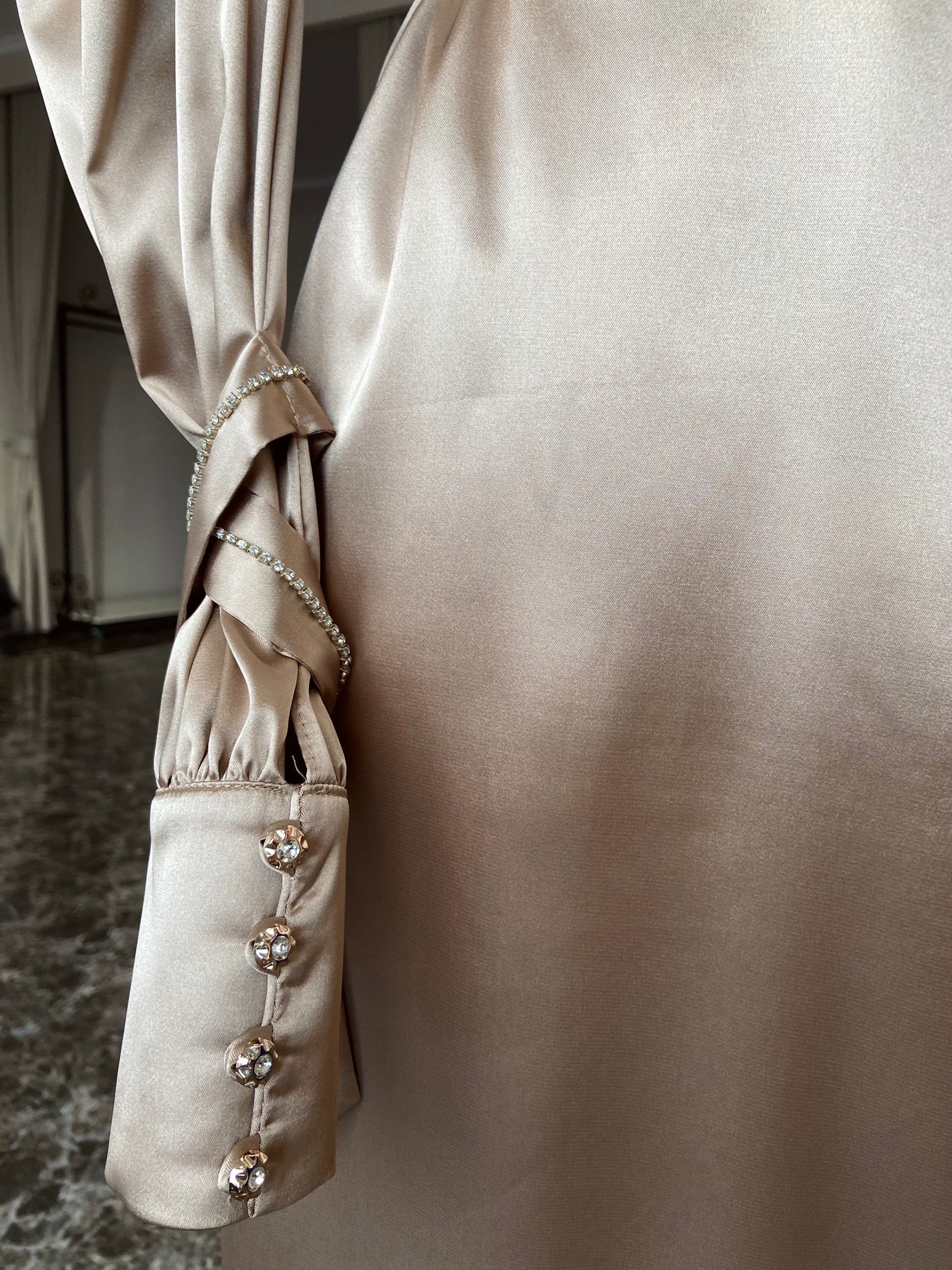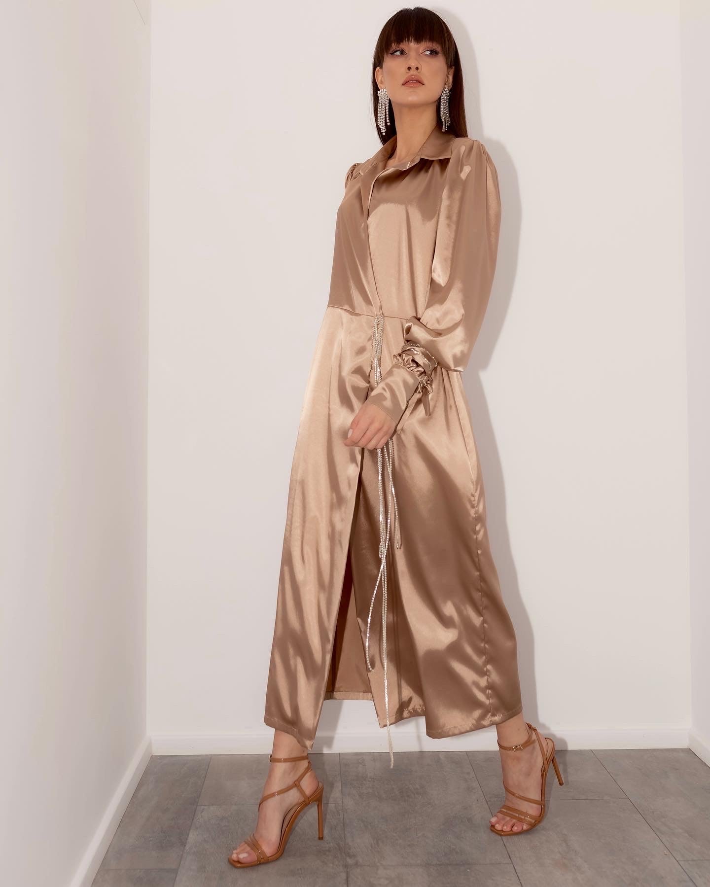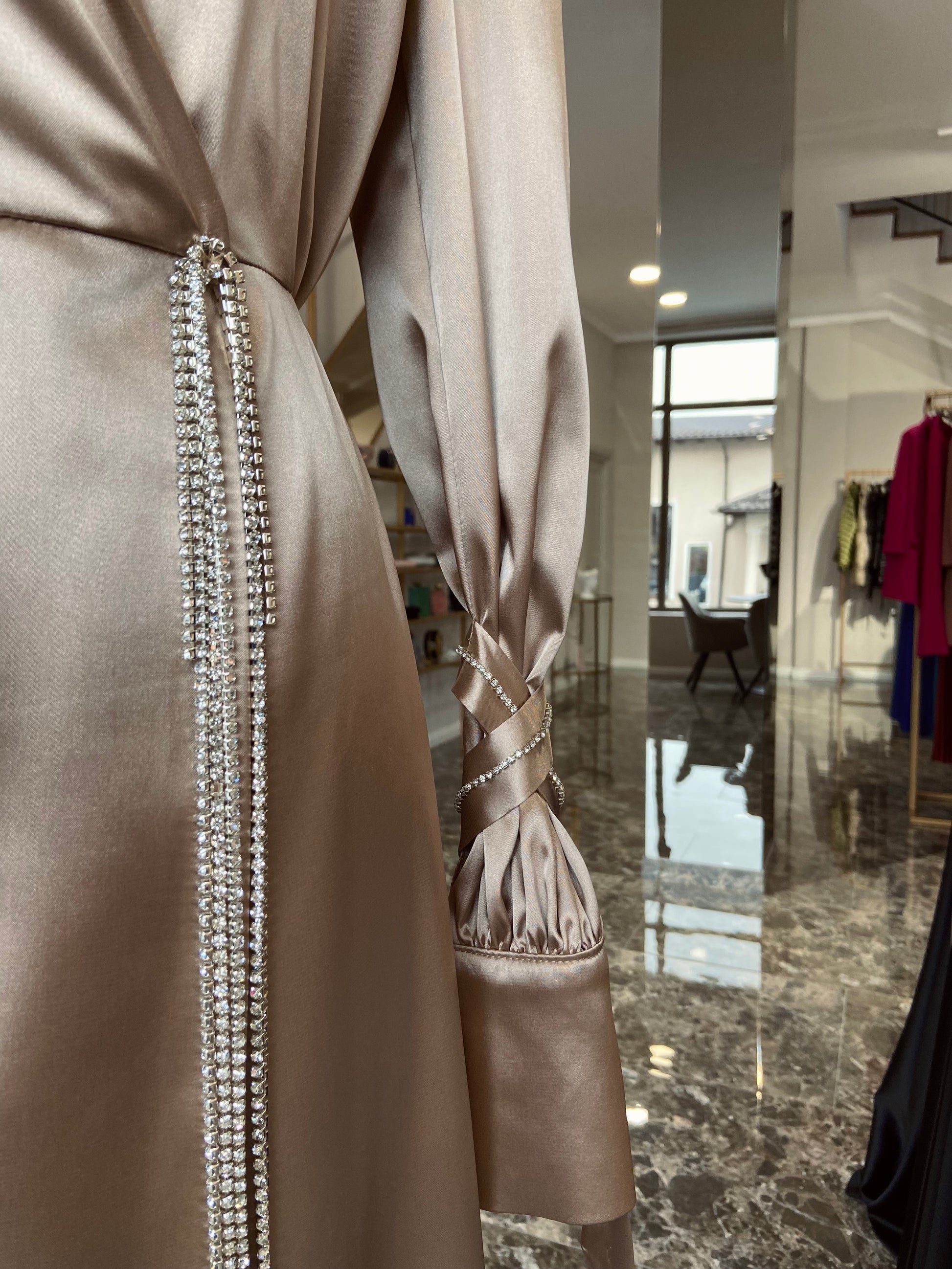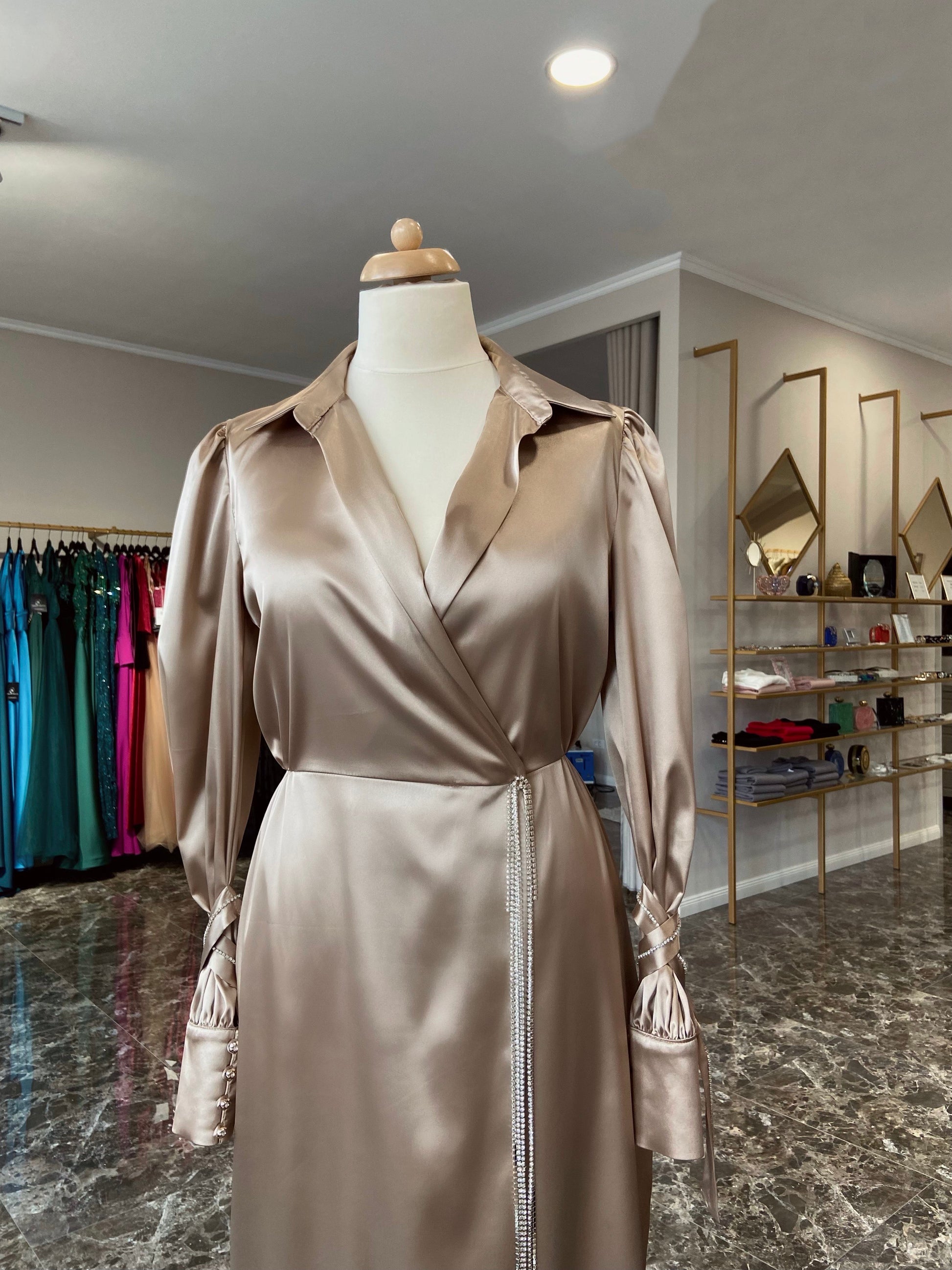 A playful dress for a vibrant soul who never stays in one place for too long, who makes the world richer with her curiosity, warmth and loving character - just like this dress. Crafted from premium satin and combined with shiny little stones for a luxurious effect.
