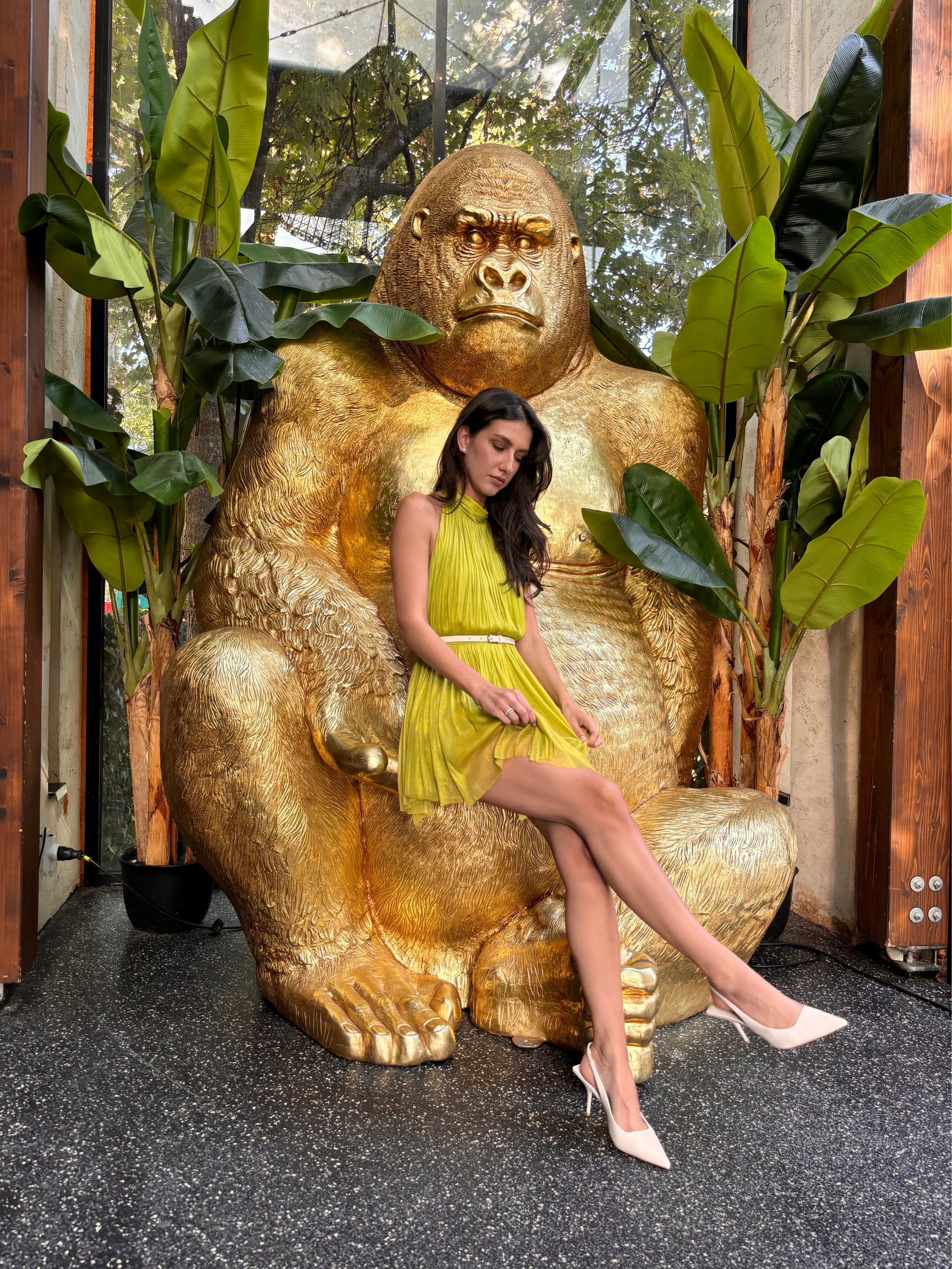 This curated silk tulle dress is perfect for any summer event. Made with high-quality silk, it offers a luxurious and stylish look that is both trendy and sexy. Its clean and sleek design makes it a must-have for any sophisticated woman. Elevate your wardrobe with this high-end dress.