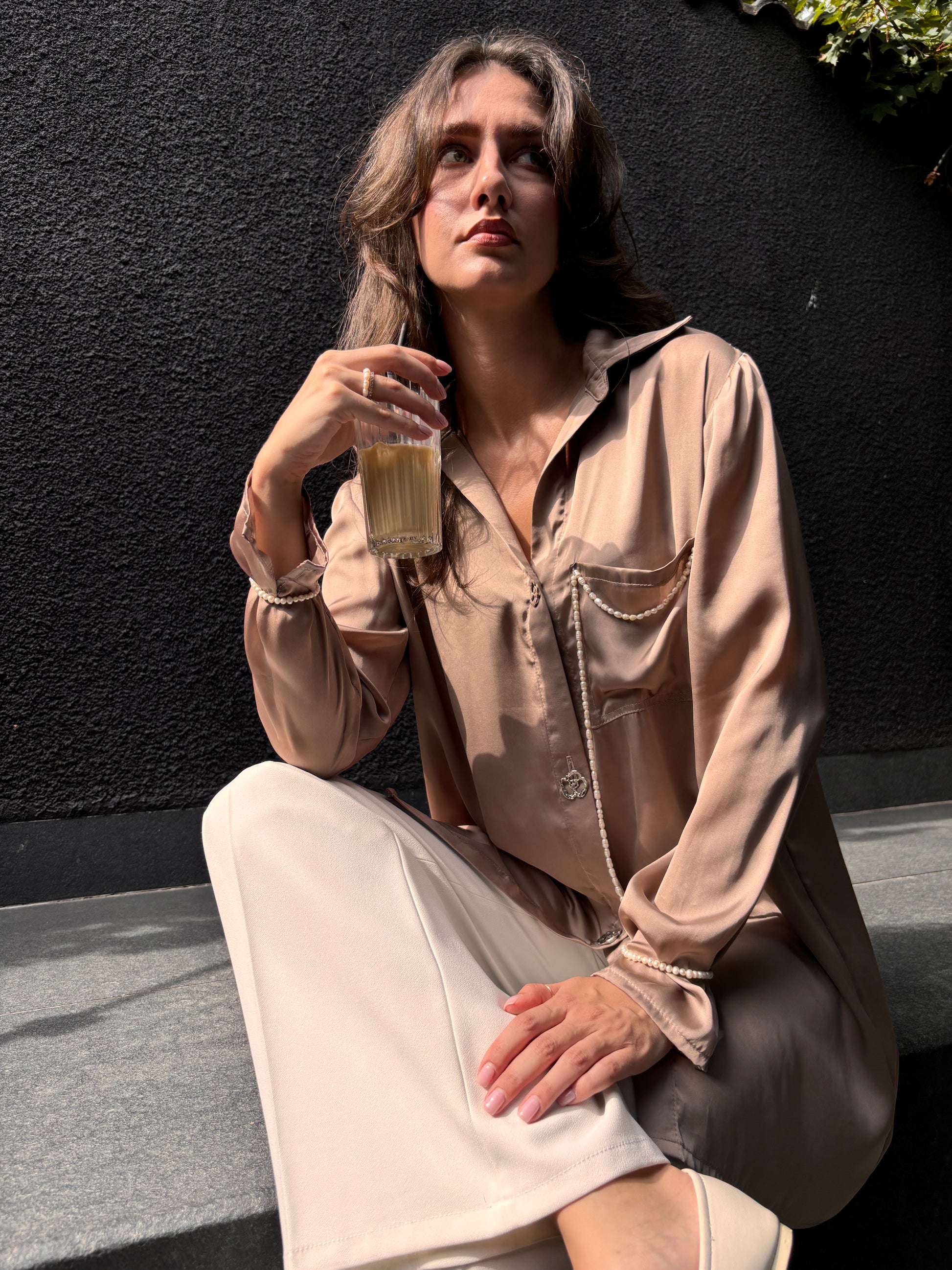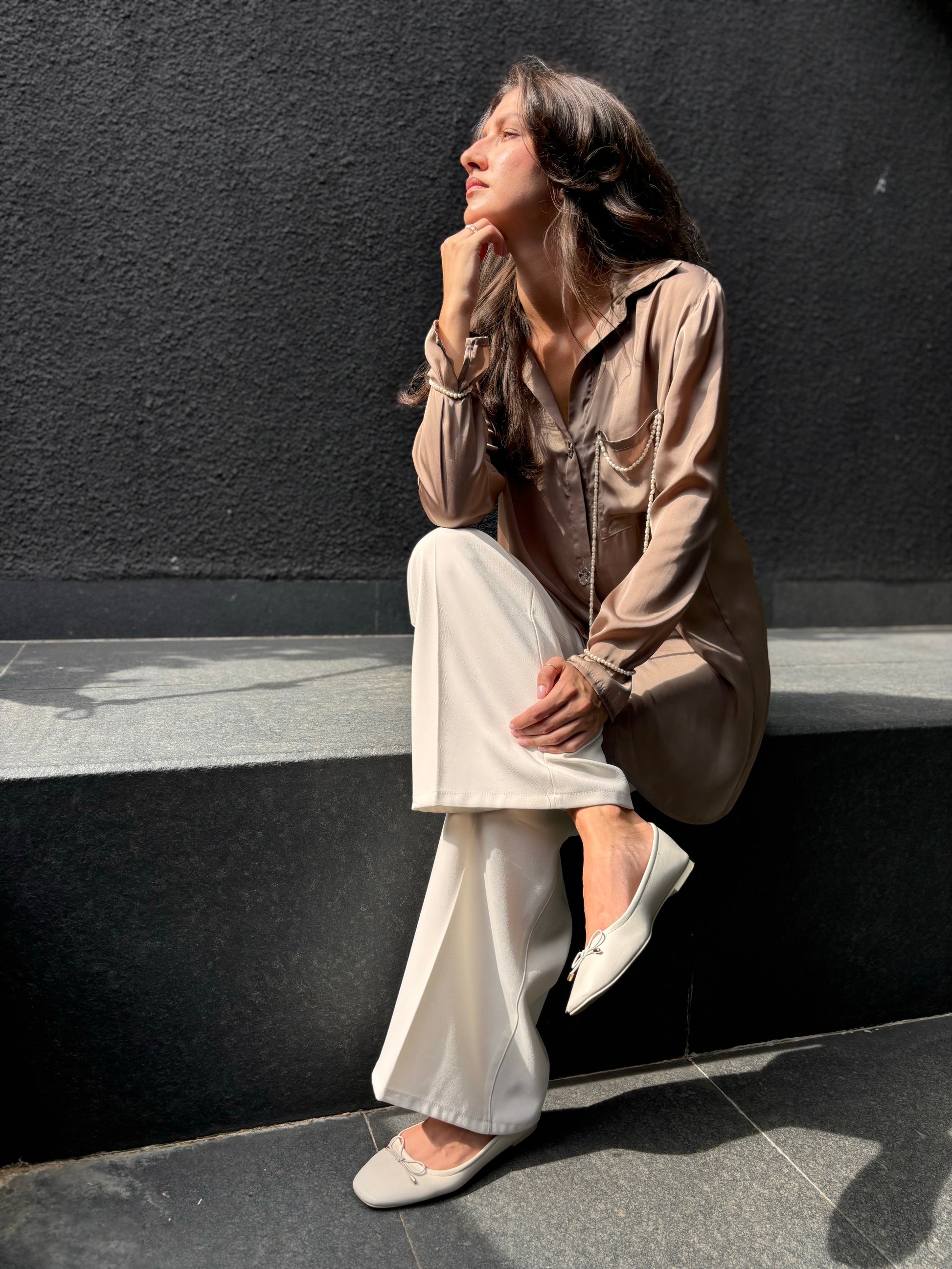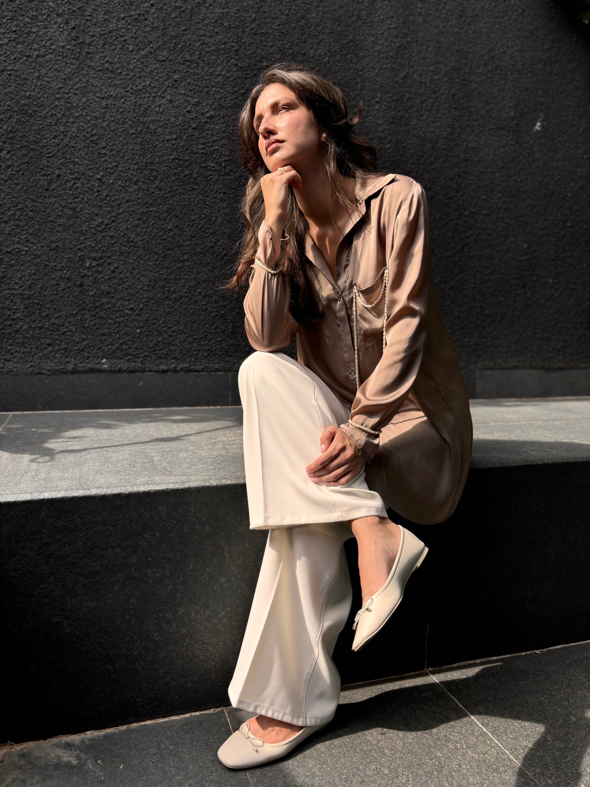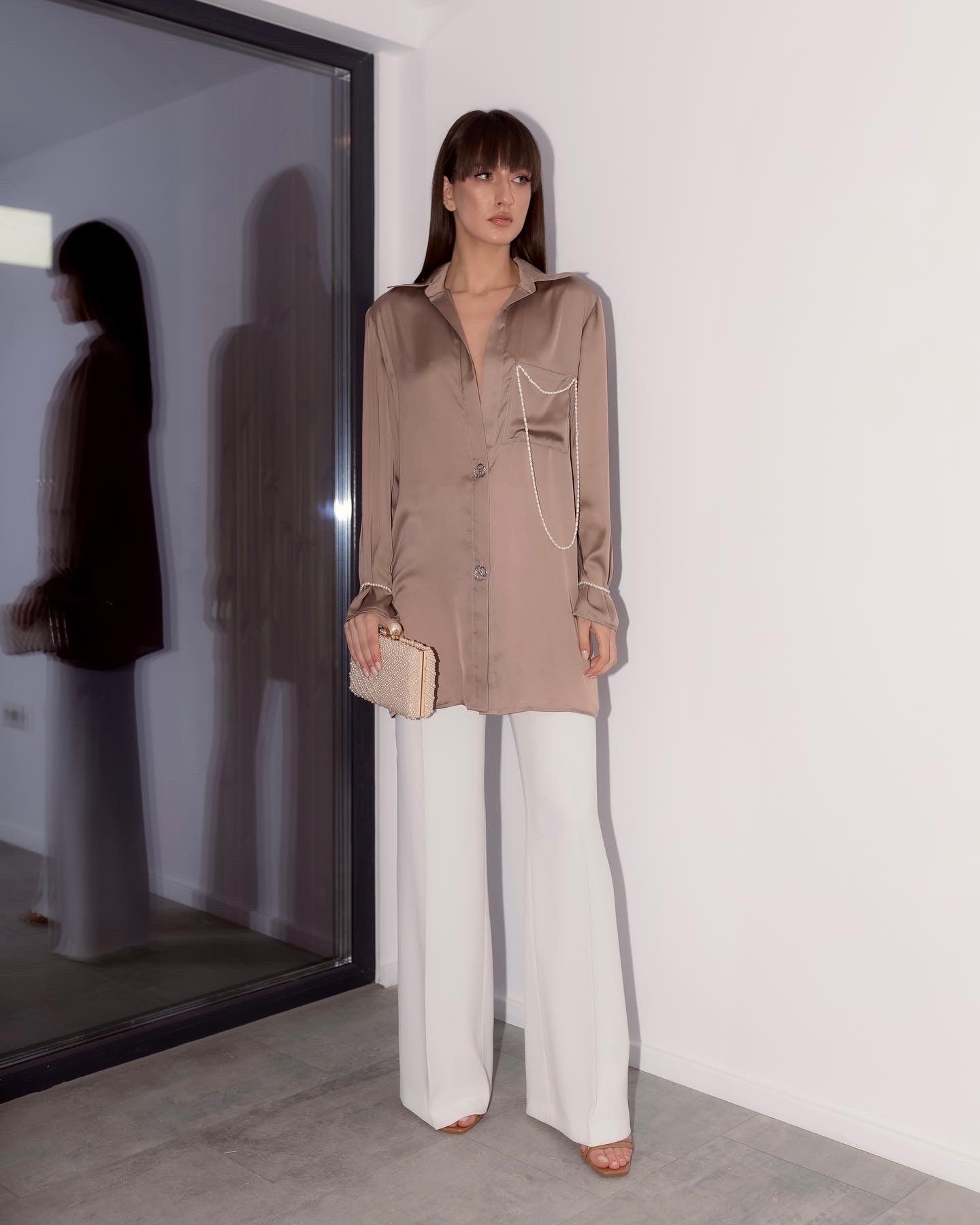 This silky satin shirt doesn't need any other accessorize. When you are in the mood of wearing something different but you don't know exactly what - this shirt is what you need. You can pair it with white trousers or even a pair of jeans `cause its coolest design will turn your moody days into happy ones.